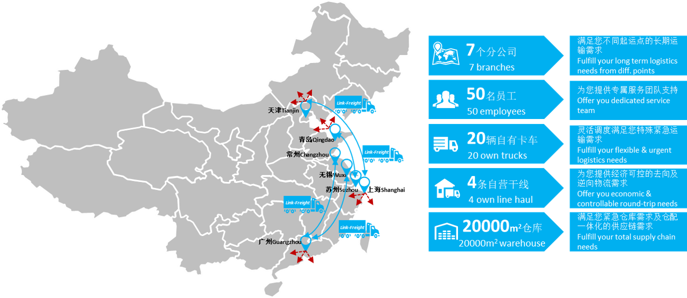 公司成立之初,主要經營干線運輸業務,至今已經擁有4條貫穿華北、華東和華南的自營干線。經過10多年的發展壯大,公司在擴大自營干線覆蓋網絡的同時,也進一步全面發展合同物流及供應鏈領域的其它業務。自2017年,公司成立國際運輸部門,將業務領域進一步擴大至國際運輸,為客戶提供包括空海運以及跨境鐵路及陸運運輸方案。